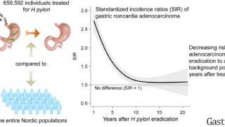 ヘリコバクター・ピロリ除菌後の胃腺癌リスク以下は、論文要旨の抜粋です。背景と目的胃のヘリコバクター・ピロリ感染は胃非噴門部腺癌の主要な危険因子であるが、西洋人集団において、ピロリ菌除菌がこの腫瘍のリスクに経時的にどのように影響するかはあまり...