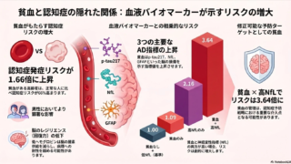 医学・医療・健康 貧血と認知症の関係 高齢者の貧血で認知症発症リスクが約1.66倍に上昇以下は、記事の抜粋です。認知症を発症していない高齢者を対象としたコホート研究において、貧血は横断的にアルツハイマー病(AD)バイオマーカー値の上昇と関連し、縦断的には認知症発症リスクの上昇と... 2026.05.01 医学・医療・健康生活・社会・政治・経済
