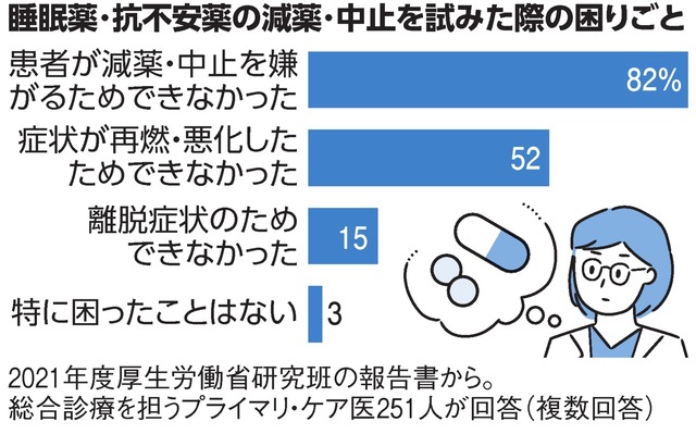 ただし問題は抗不安薬としての使用である。生きづらさへの短絡的な解決になっているような場合はなかなかやめられず、依存症になっている事例も多い。このようなケースは単なる睡眠薬のように一筋縄ではいかないことは最後に強調しておこう。
