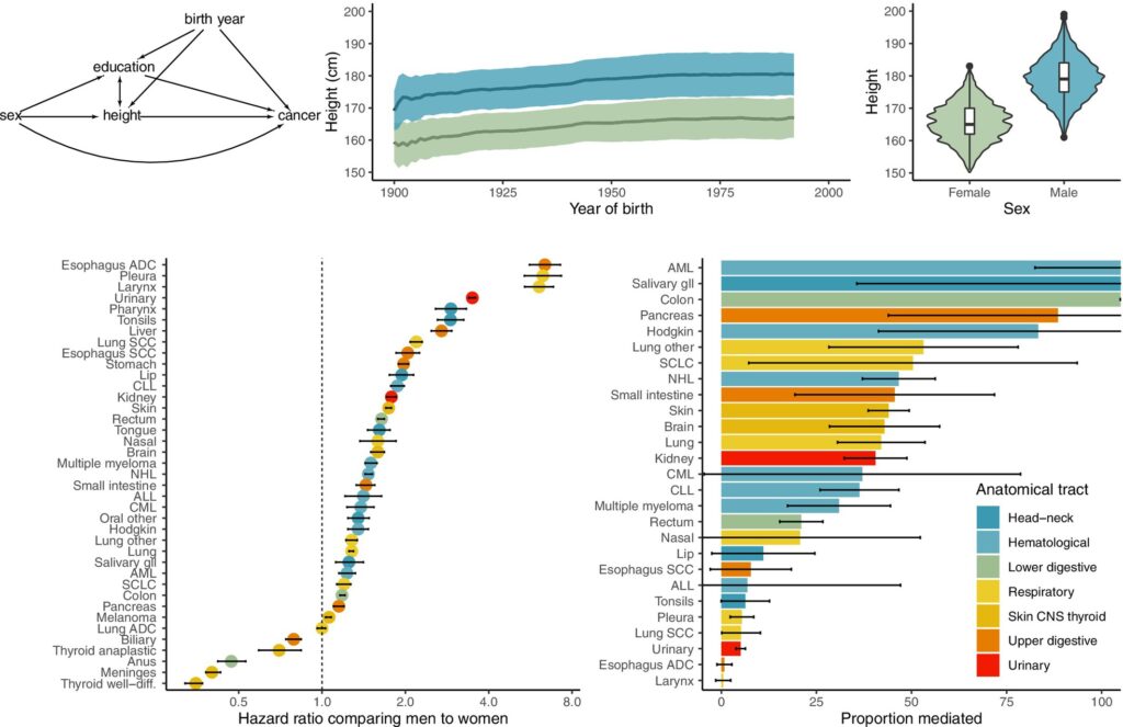 男女ともに罹患するほとんどの癌において、男性は女性よりもリスクが高い。身長が高いことは癌リスクの上昇と関連しており、男性は平均して女性よりも身長が高いことから、幹細胞数の代理指標として成人の身長が男性の癌リスク上昇をどの程度説明するかを調査した。