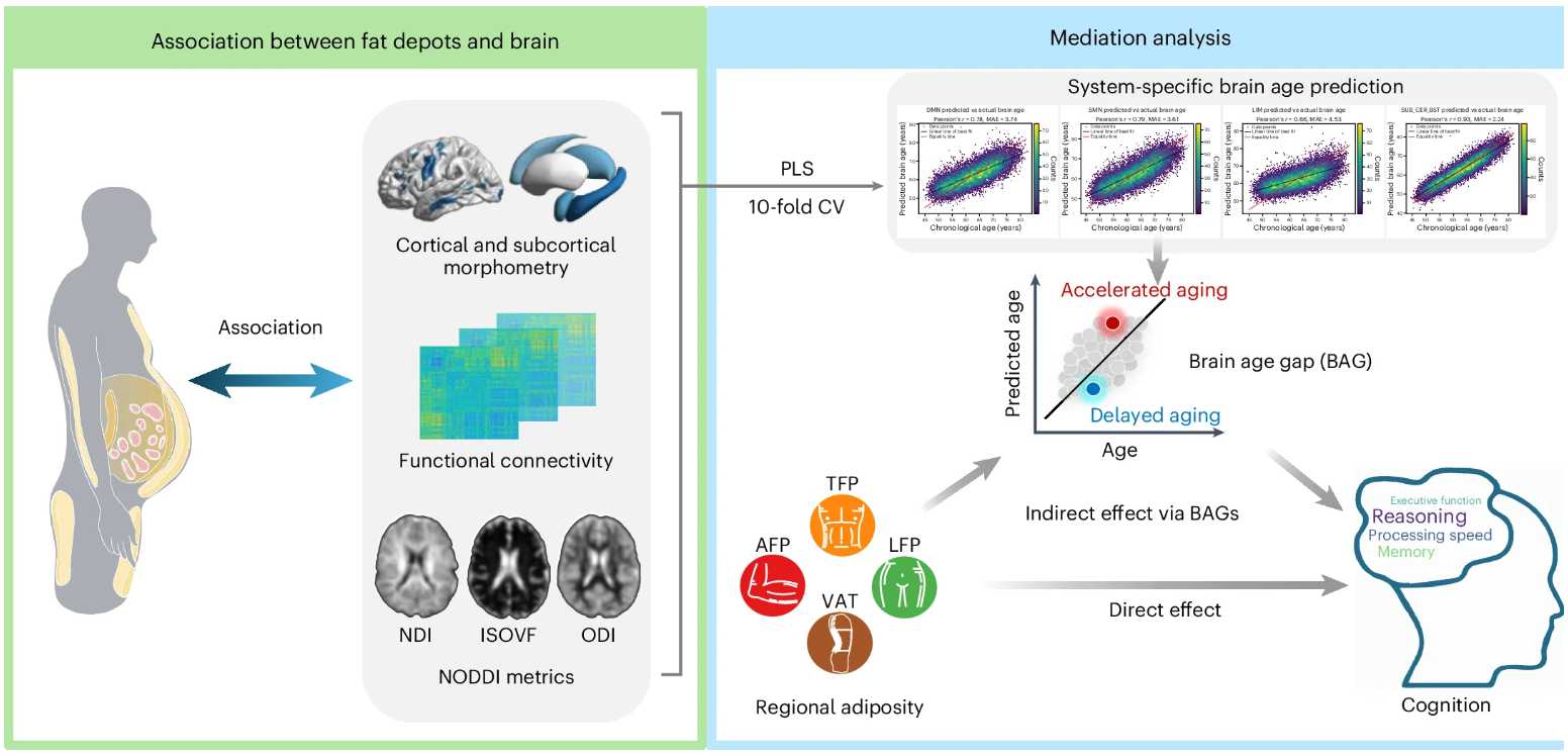 肥満が脳の健康に悪影響を及ぼすことは広く知られているが、これまでの研究の多くは体格指数(BMI)を主要な指標として用いてきた。しかしBMIは全身の肥満度を示す単純な指標であり、身体のどの部位に脂肪が蓄積しているか、またそれが脳にどのように影響しているかという情報を捉えることができていない。