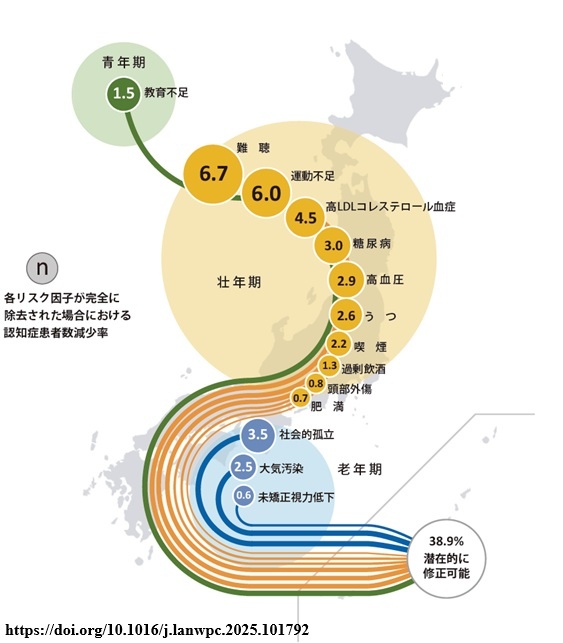 元論文のタイトルは、「日本における認知症予防の可能性:14の修正可能なリスク要因の人口寄与率の計算とリスク要因の低減の影響の推定」です(論文をみる)