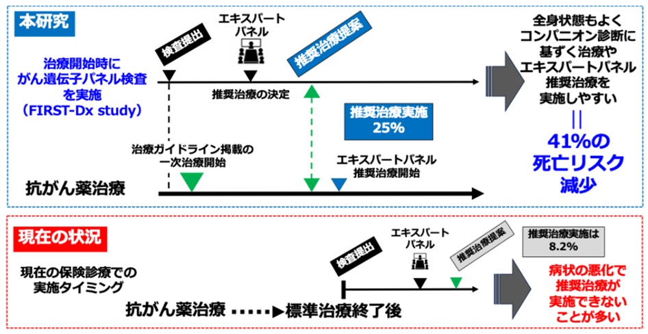 一方、世界的なCGP検査の推奨時期は、1次治療開始前または可能な限り早期、である。そのような中、日本でも1次治療開始前に切除不能進行・再発がんにCGP検査を行う「FIRST-Dx研究」が2021年5月から先進医療Bとして実施された。